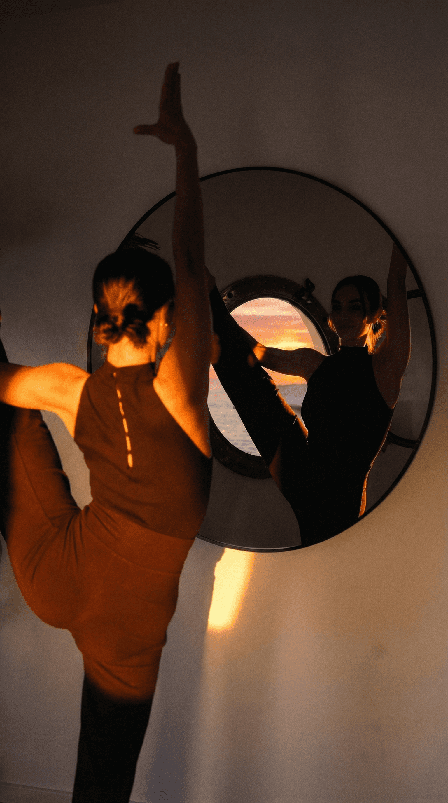 Un espace intérieur de 90 m² ouvert en panorama sur la mer. La lumière entre de part en part, reflétée par l’eau qui entoure la pièce. Le coucher de soleil s’y installe chaque soir. Le studio comprend une cuisine, un vestiaire, des toilettes et des assises intégrées pour accueillir ou observer. Tout y est pensé pour le confort, la fluidité et la concentration. Le seul bruit ici, c’est la mer contre les rochers.